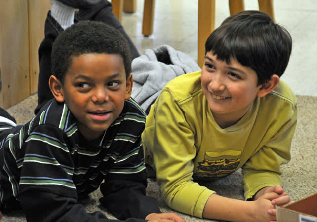 At Salem-Hyde Elementary School, Syracuse, NY, a blended classroom of 30 students (including some with severe learning disabilities) each wove their own colorful pouch.